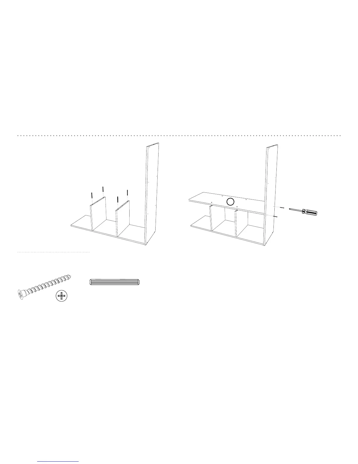 2. Attach horizontal divider. Be sure to assemble with all nished edges to front.