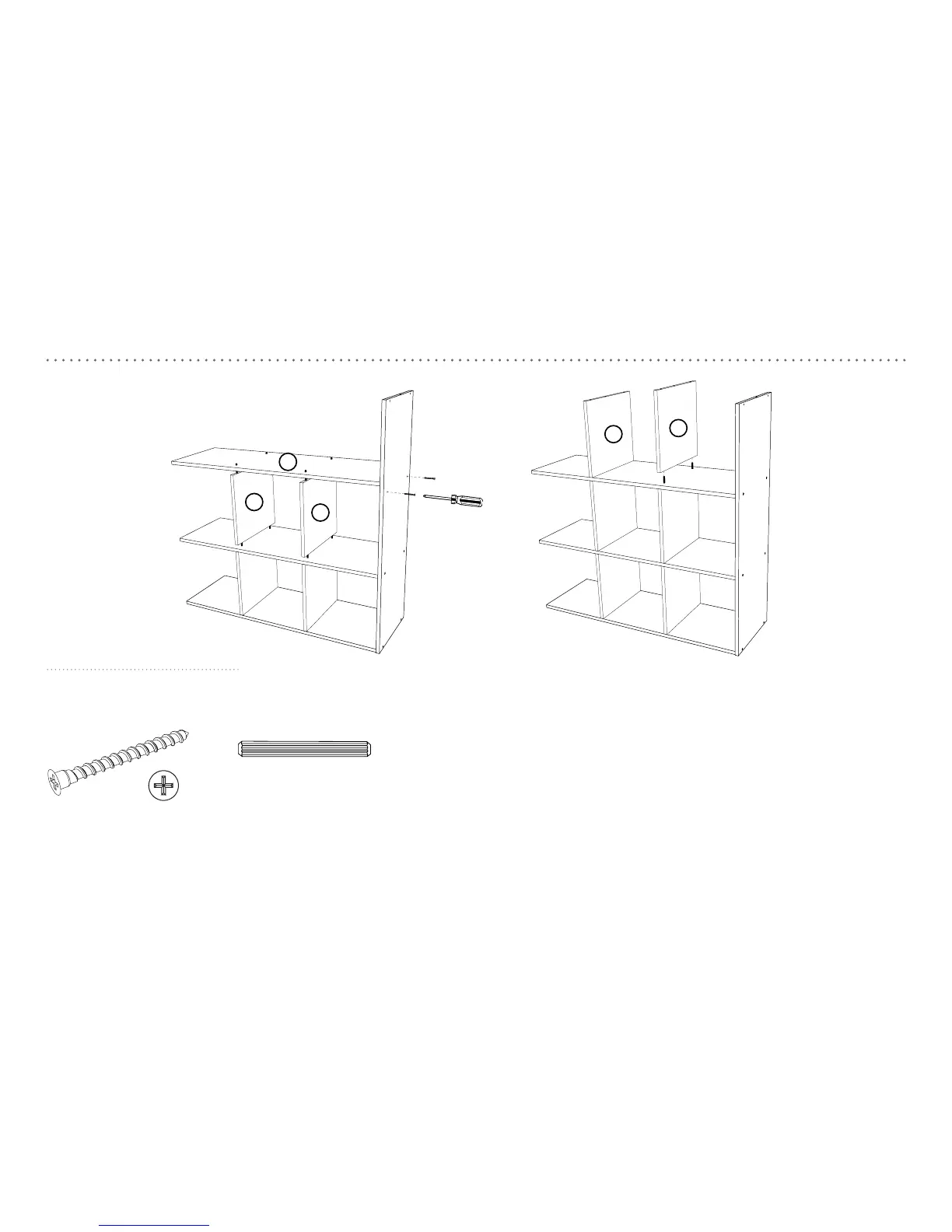 3. Attach horizontal divider. Be sure to assemble with all nished edges to front.