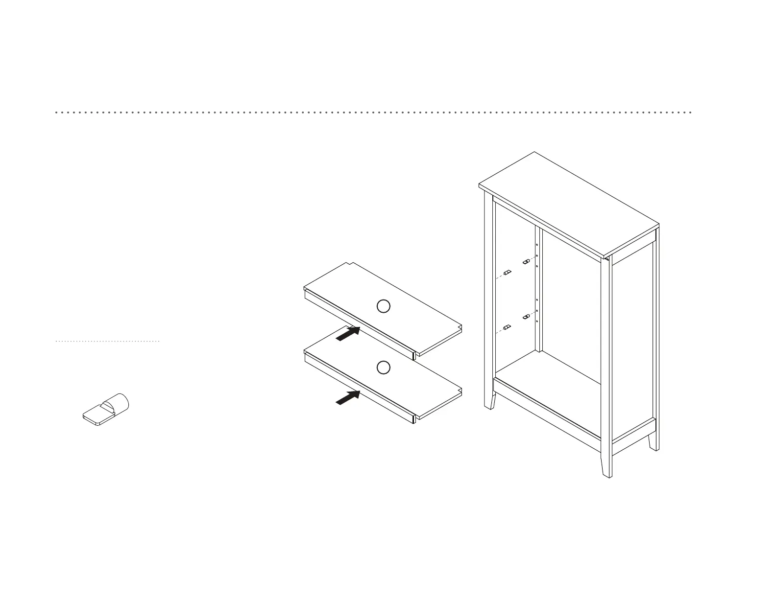 1. Insert shelf supports into desired hole. Different holes accommodate different shelf heights.