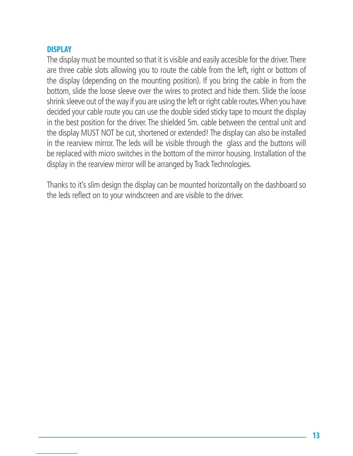 the display MUST NOT be cut, shortened or extended! The display can also be installed