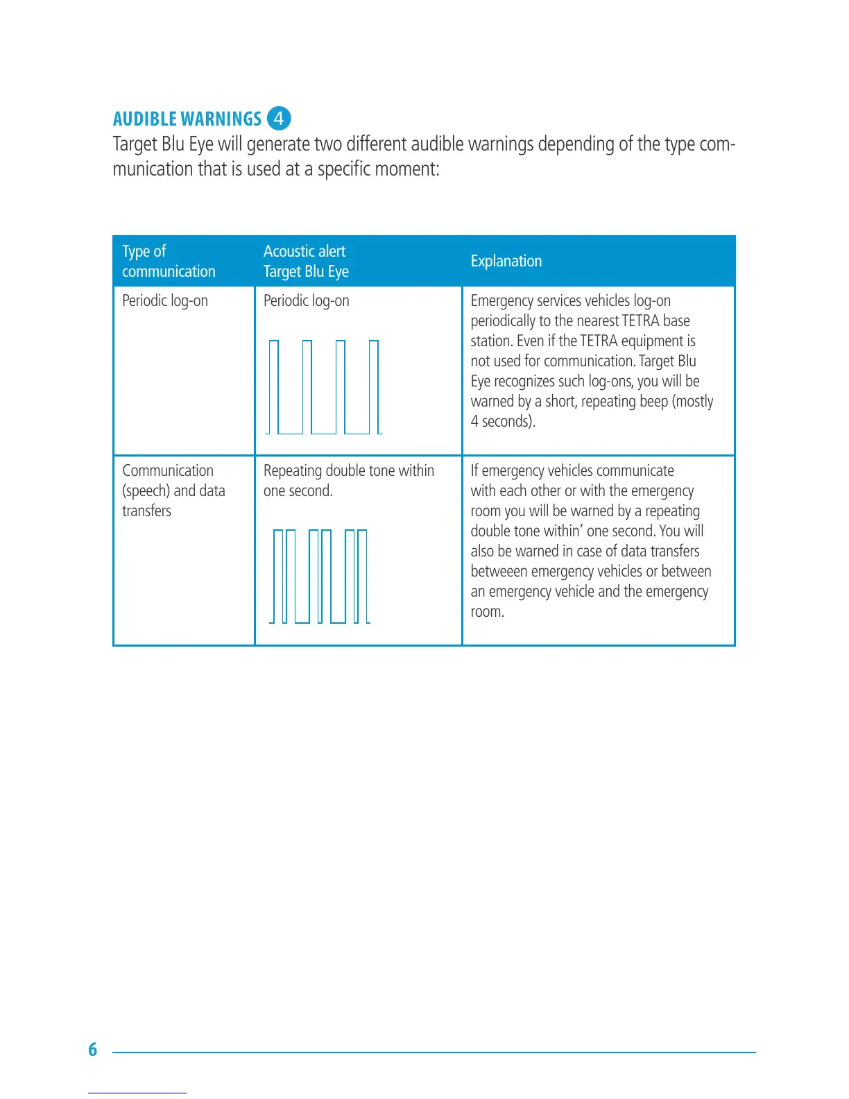 Target Blu Eye will generate two different audible warnings depending of the type com-