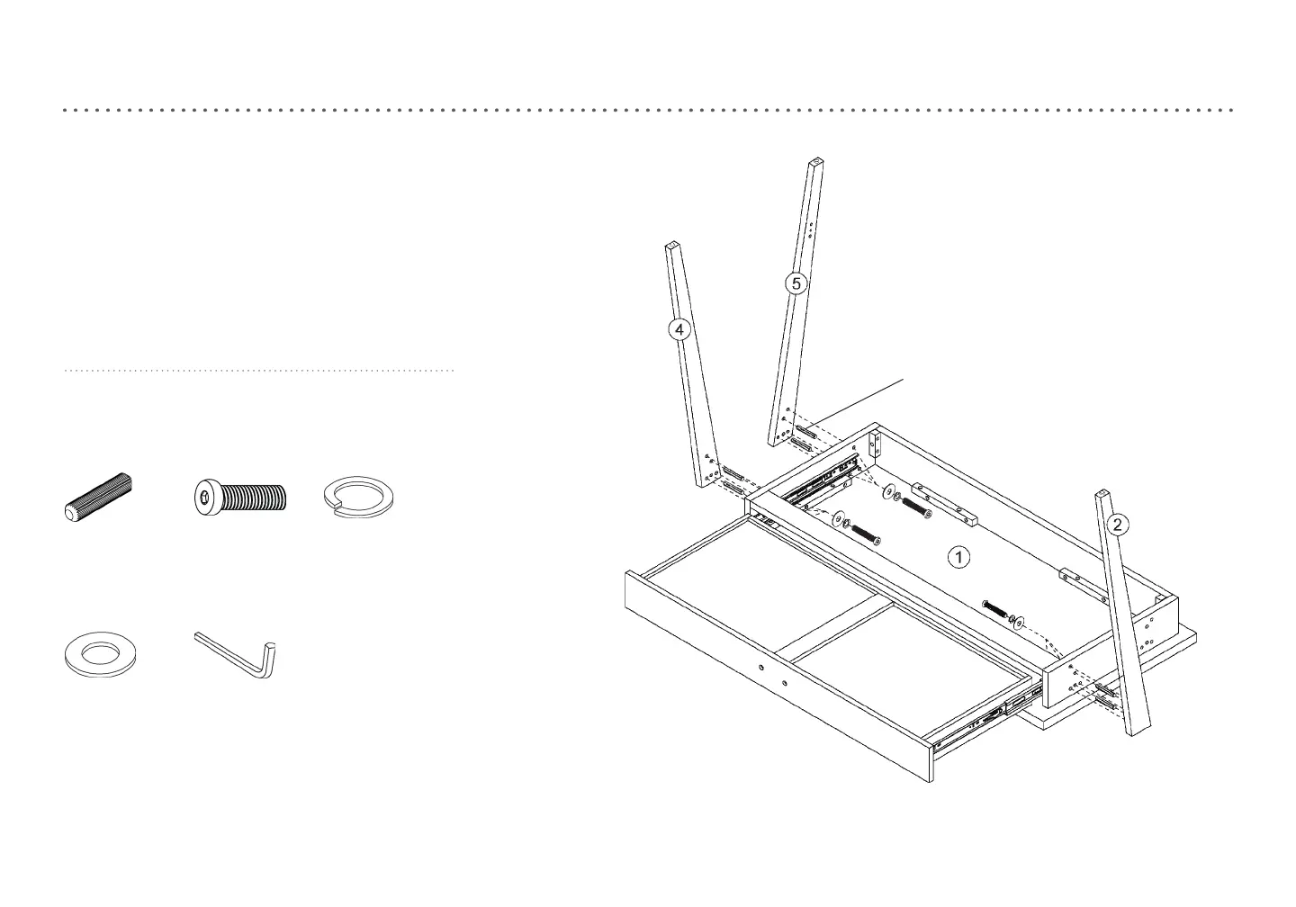 step 2: attach left front leg/right front leg/right back leg to top panel