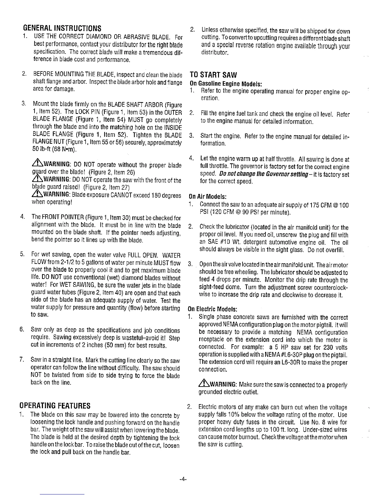 Target MINI CON II - General Operation Instructions; Blade Mounting and Preparation; Wet Sawing Procedure; Cutting Techniques and Depth
