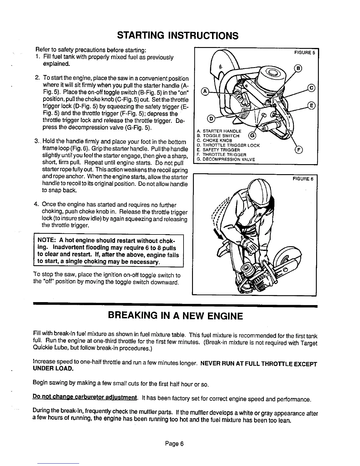 Target Quickie 65/12 - STARTING INSTRUCTIONS; BREAKING IN A NEW ENGINE