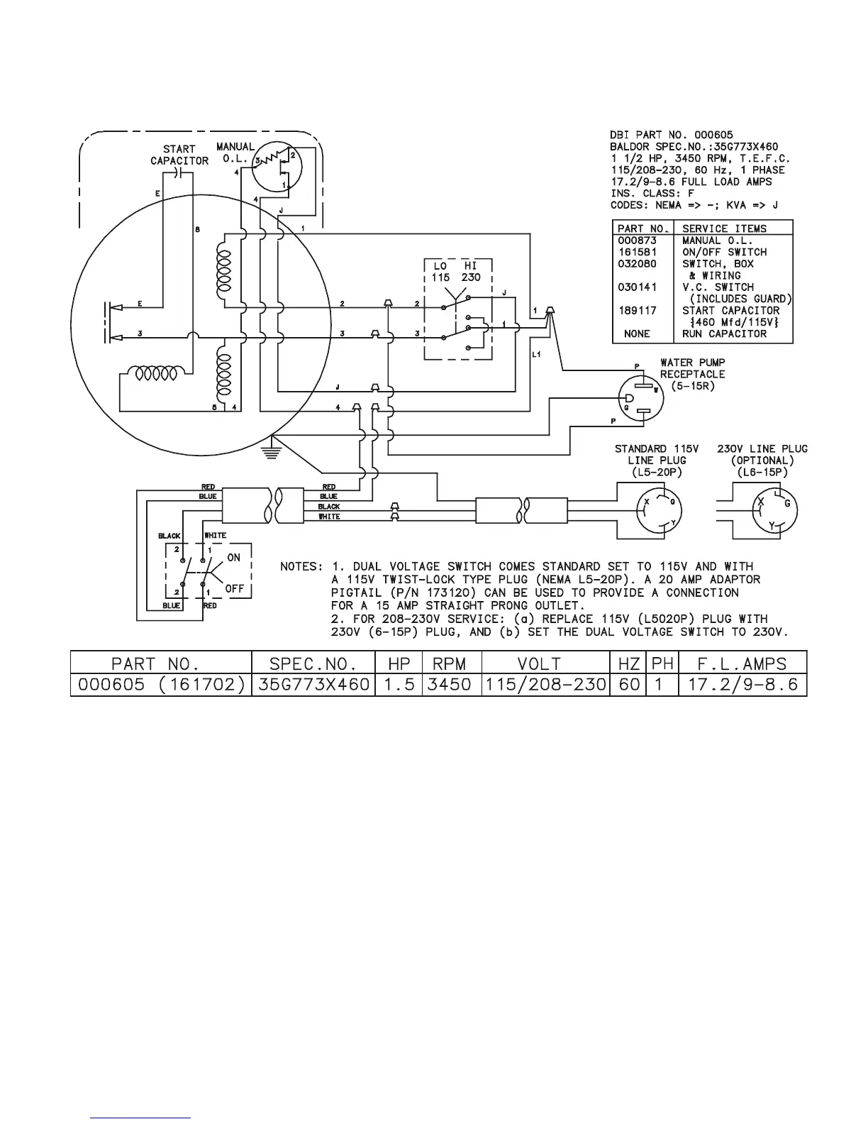 Diagram 3: Wiring Diagram 000605, 1.5HP, 115V/208-230/60/1