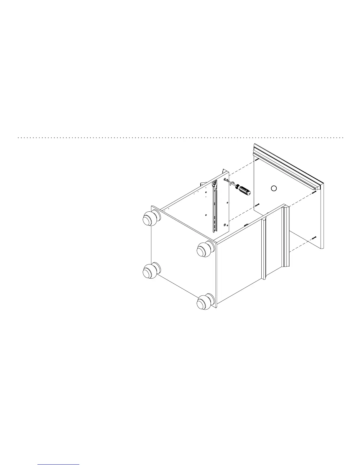 1. Center top front molding left to right. Tighten all screws in L-brackets.