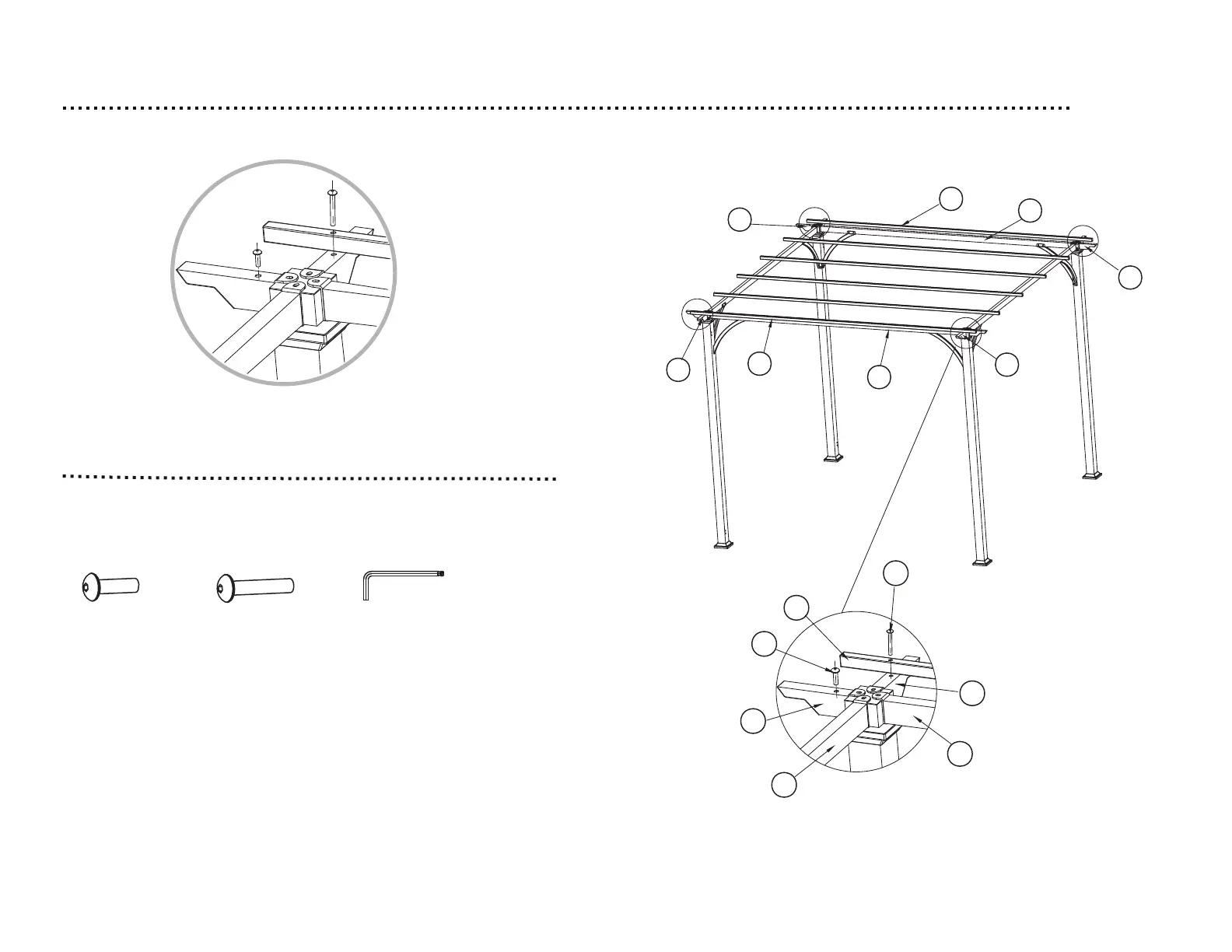 1. Attahch another 2 top bars (C) to the end tips (H), secure