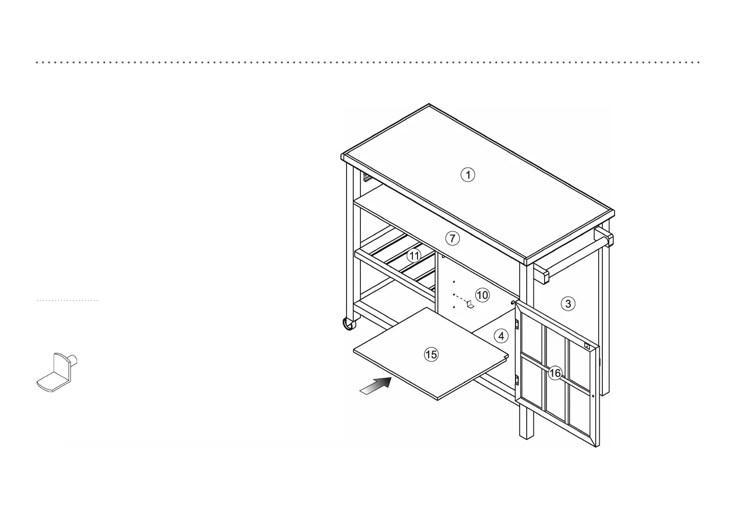 11.2. Angle shelf to t between the rails and set on top of shelf supports.