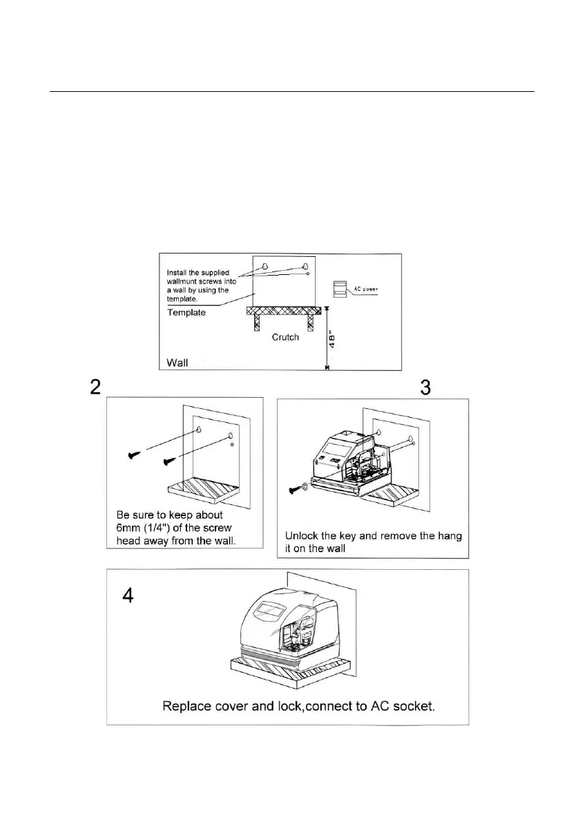 Caution : The supplied screws are intended for use on a thick wooden wall or wooden