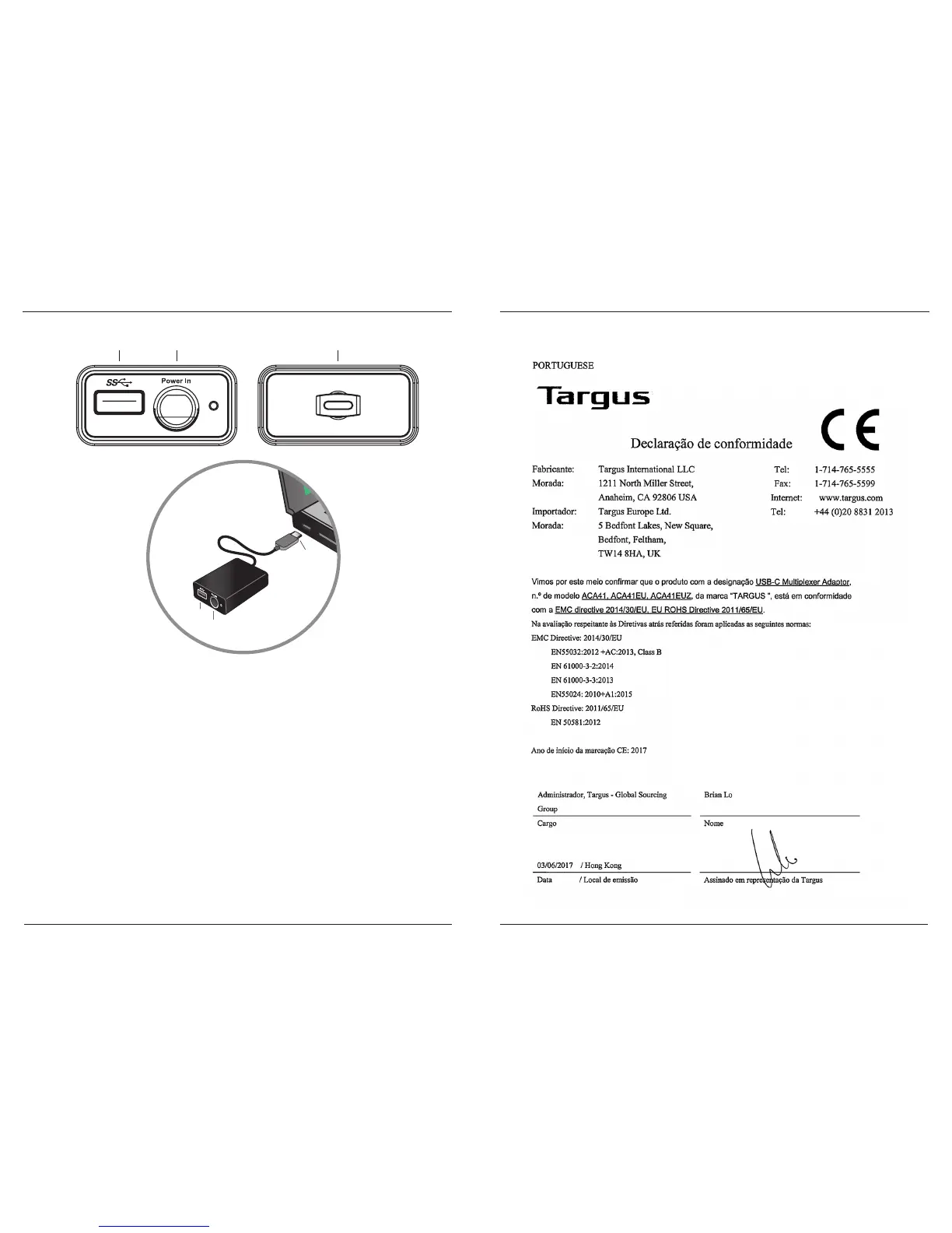 Adaptador Multiplexador Targus USB-C (Converte ACP71 e ACP77 para compatibilidade com USB-C)