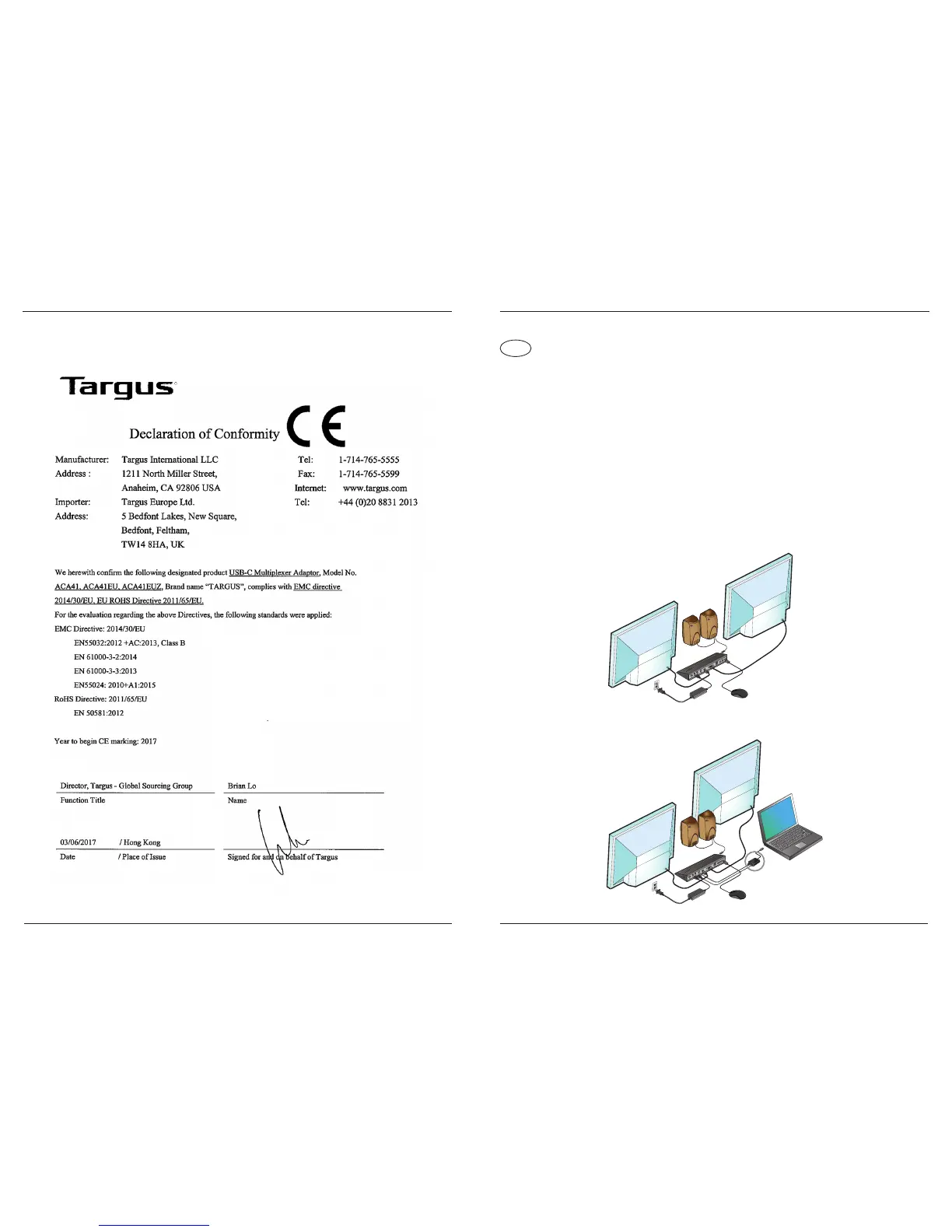 2. Schließen Sie Targus ACP71 oder ACP77 und den Multiplexer-Adapter an Ihr