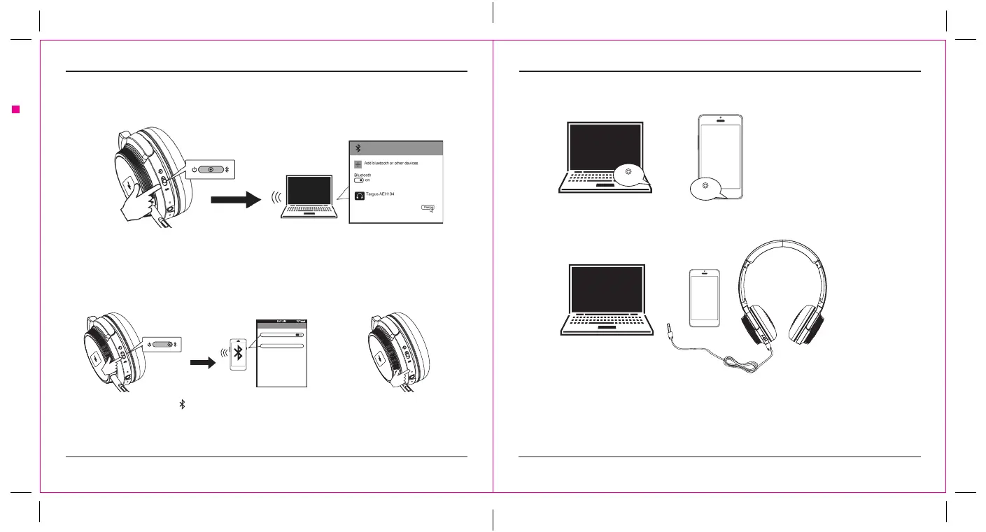 Note: When connected via the AUX wired connection the wireless functions of the headset will be