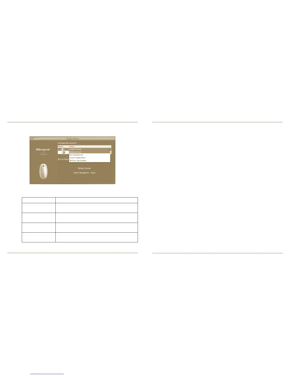 Action par défaut Réglage des boutons sur une fonction spécifique.