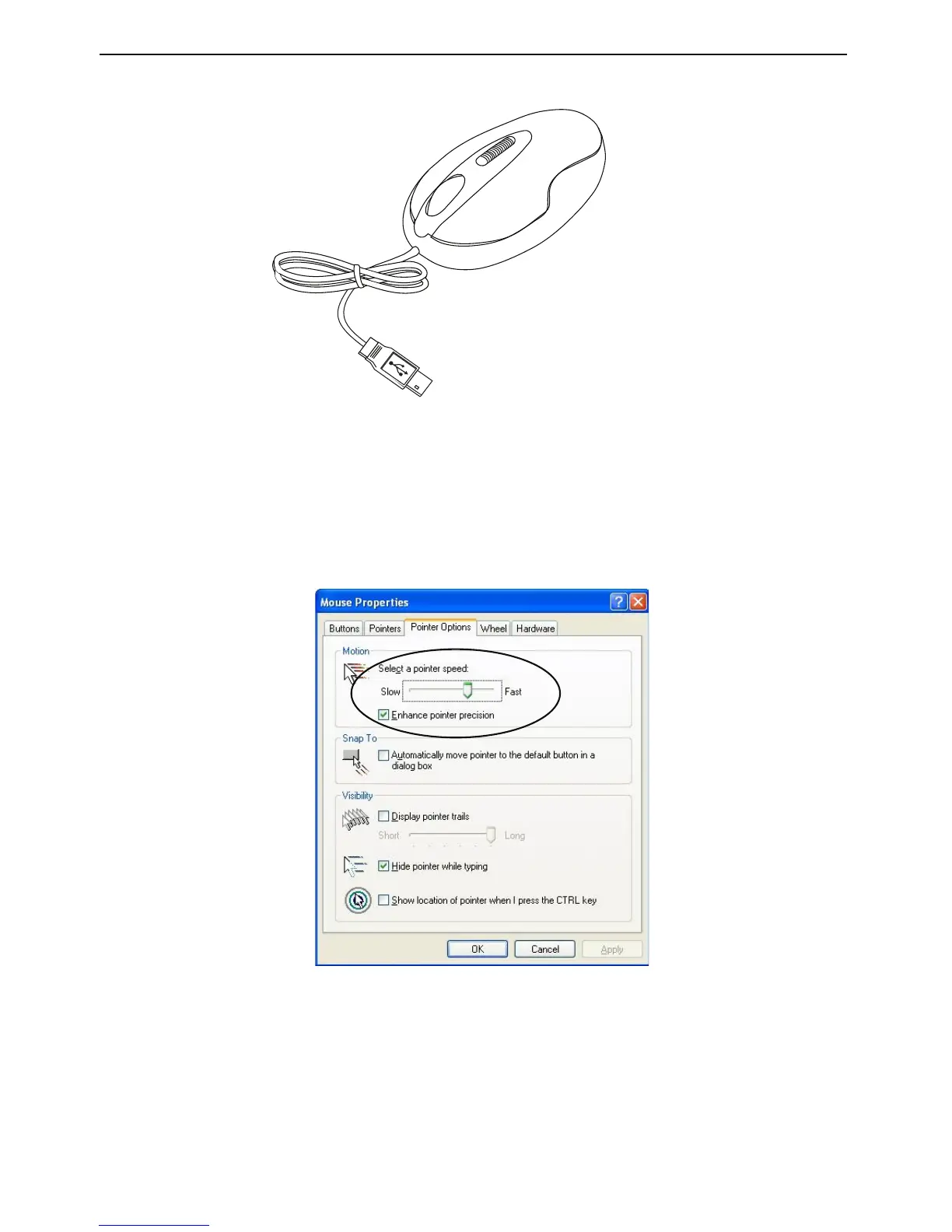 "opções de apontador". Sob "Movimento", utilize o controlo deslizante