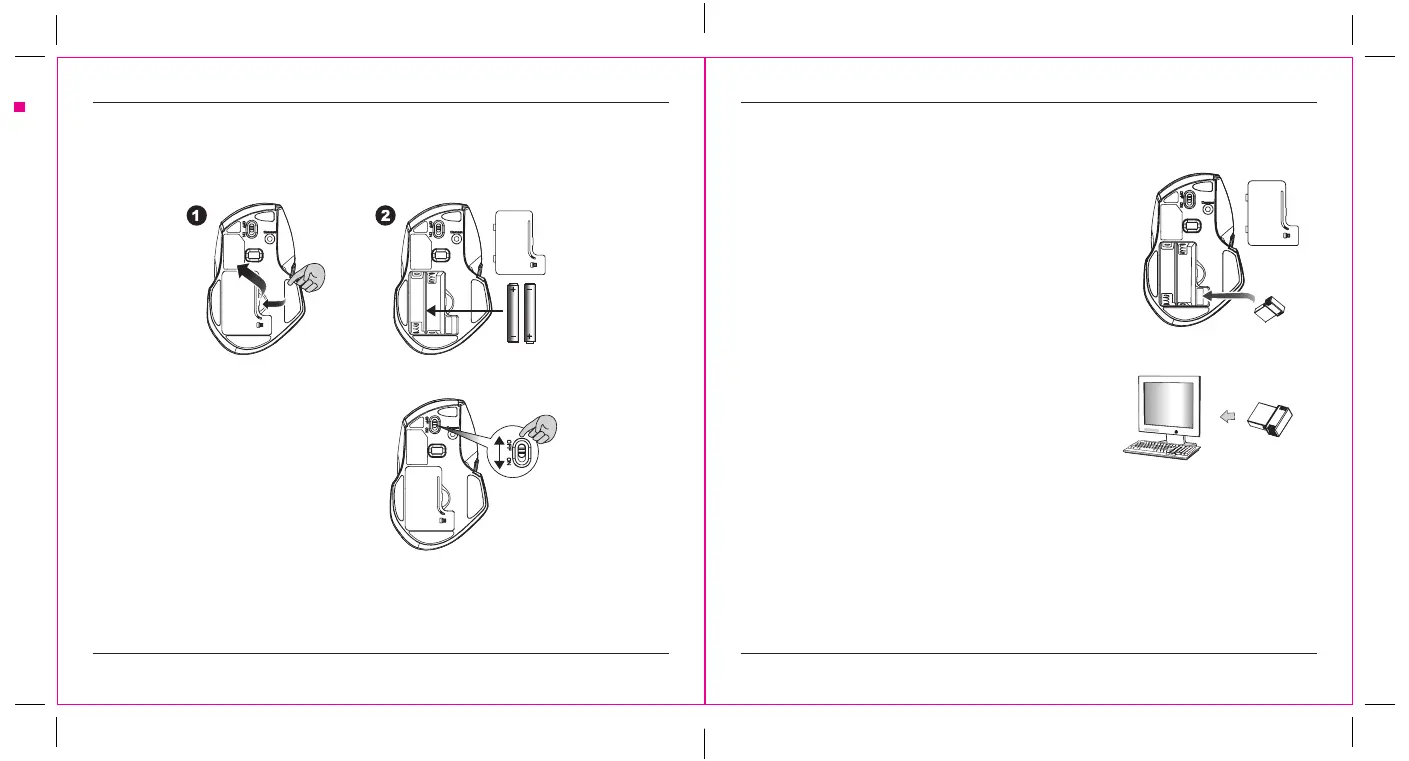 1. Inserte las pilas en el mouse y siga los pasos a continuación.