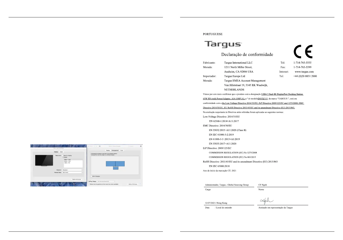 Após a instalação do software DisplayLink para macOS, disponível em www.targus.