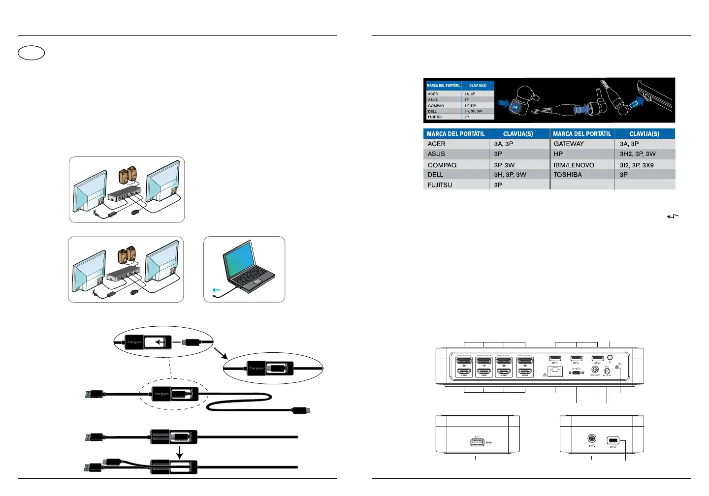 2. Conecte la base de conexión universal de Targus a su equipo.