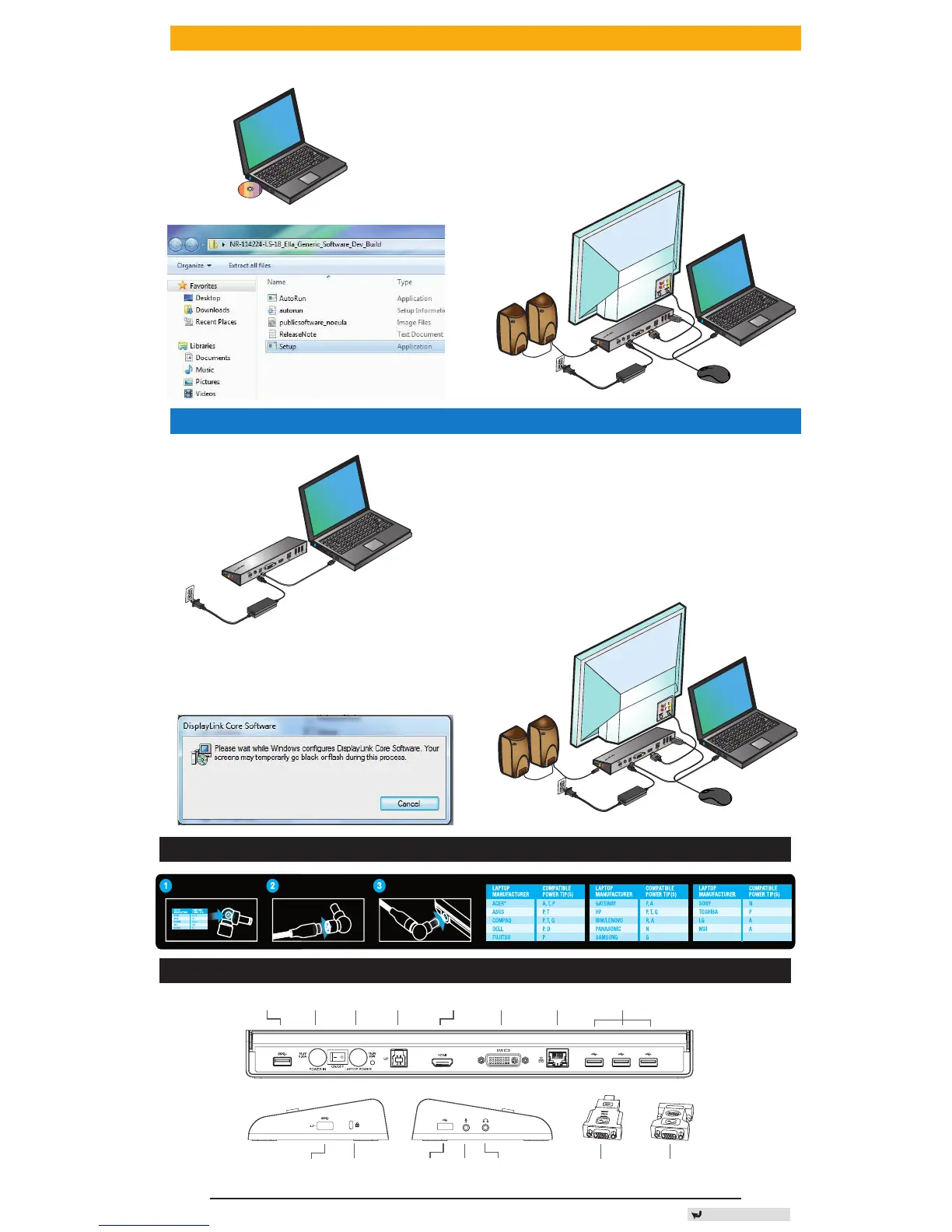 Connect to the power cord Connect to your laptop