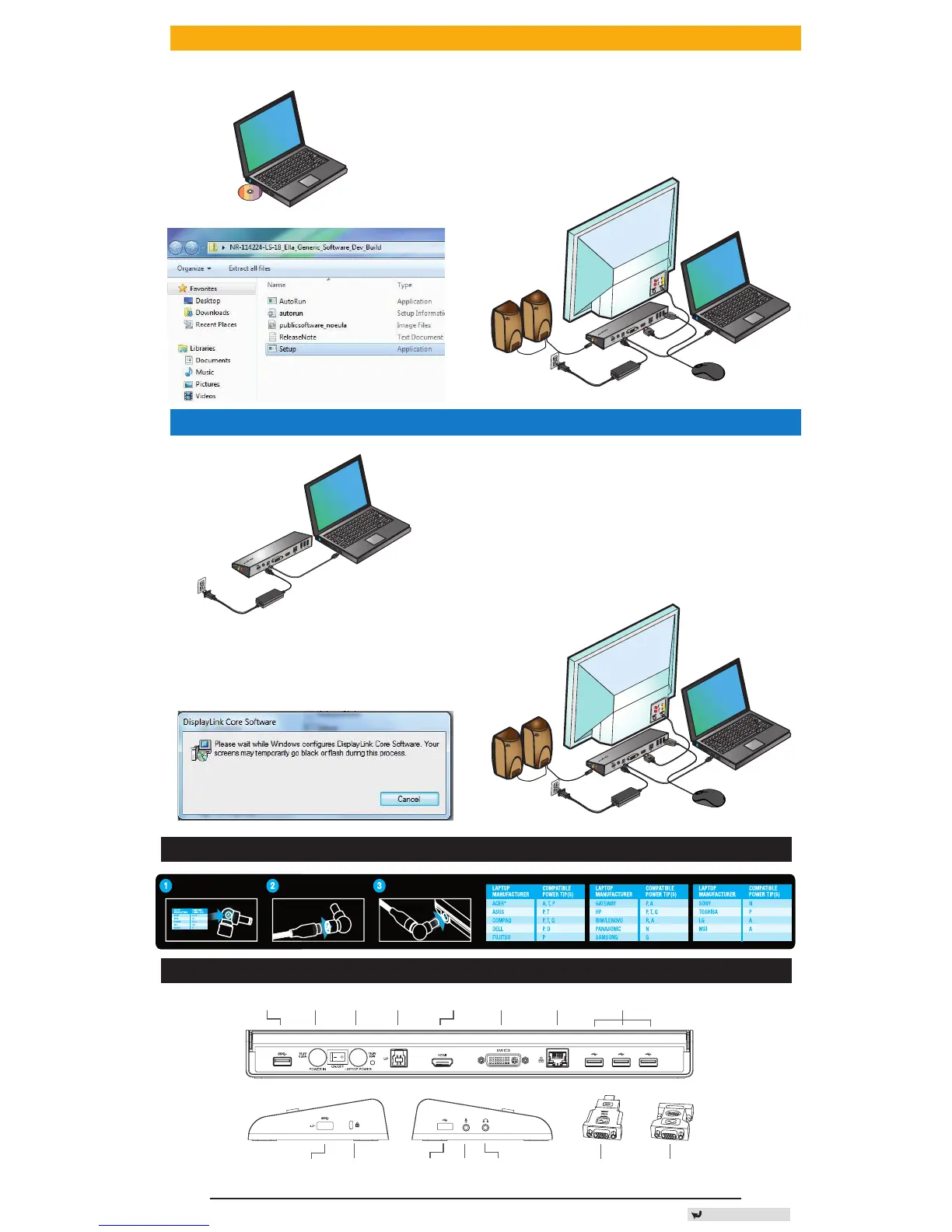Connect to the power cord Connect to your laptop