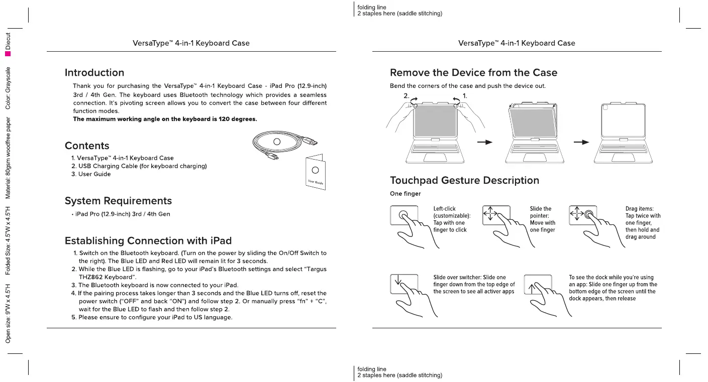 Targus VersaType - System Requirements; iPad Compatibility; Remove Device from Case; Device Removal Steps