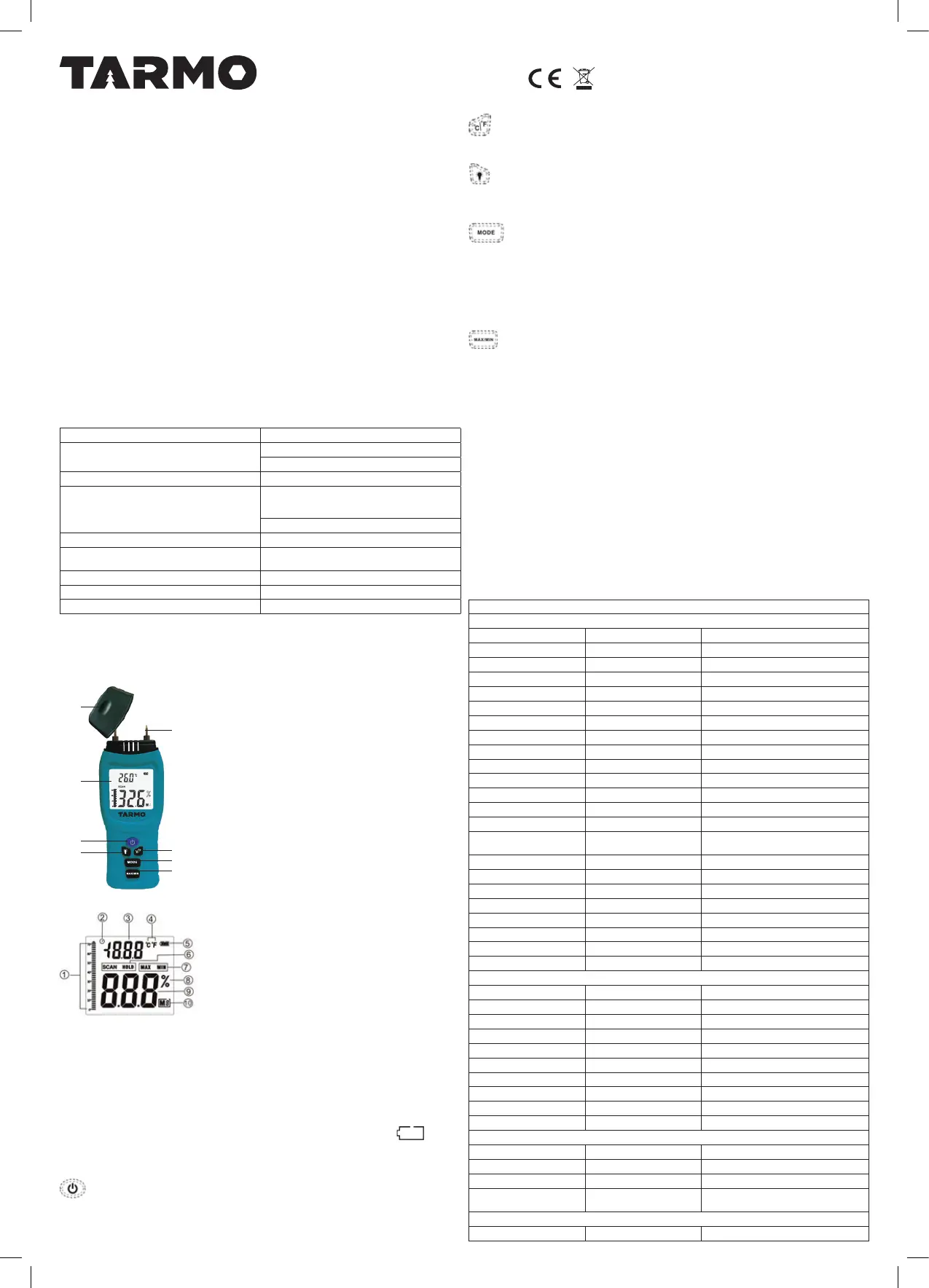 nustatytumėte drėgmės kiekį. Išmatuotos vertės bus rodomos skystųjų kristalų ekrane.