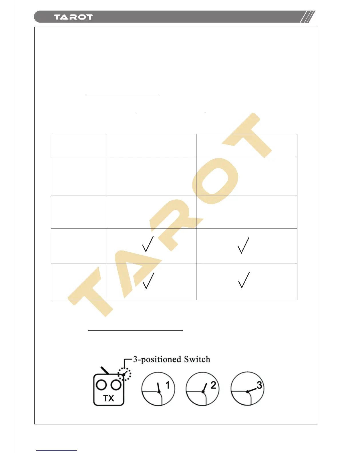 Take the three-positioned switch as an example: Position 1 refers to FPV Mode; Position 3