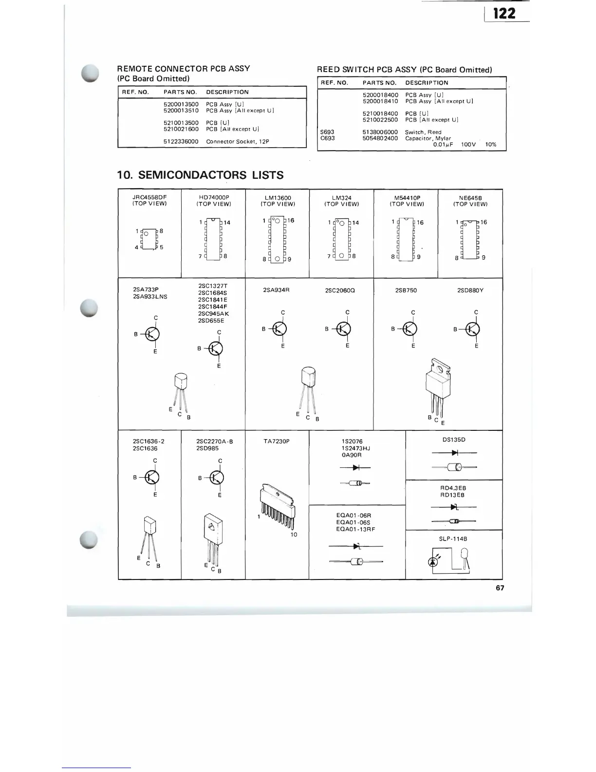 Tascam 122 - Remote Connector PCB Assy (PC Board Omitted); Reed Switch PCB Assy (PC Board Omitted); 10. Semiconductors Lists