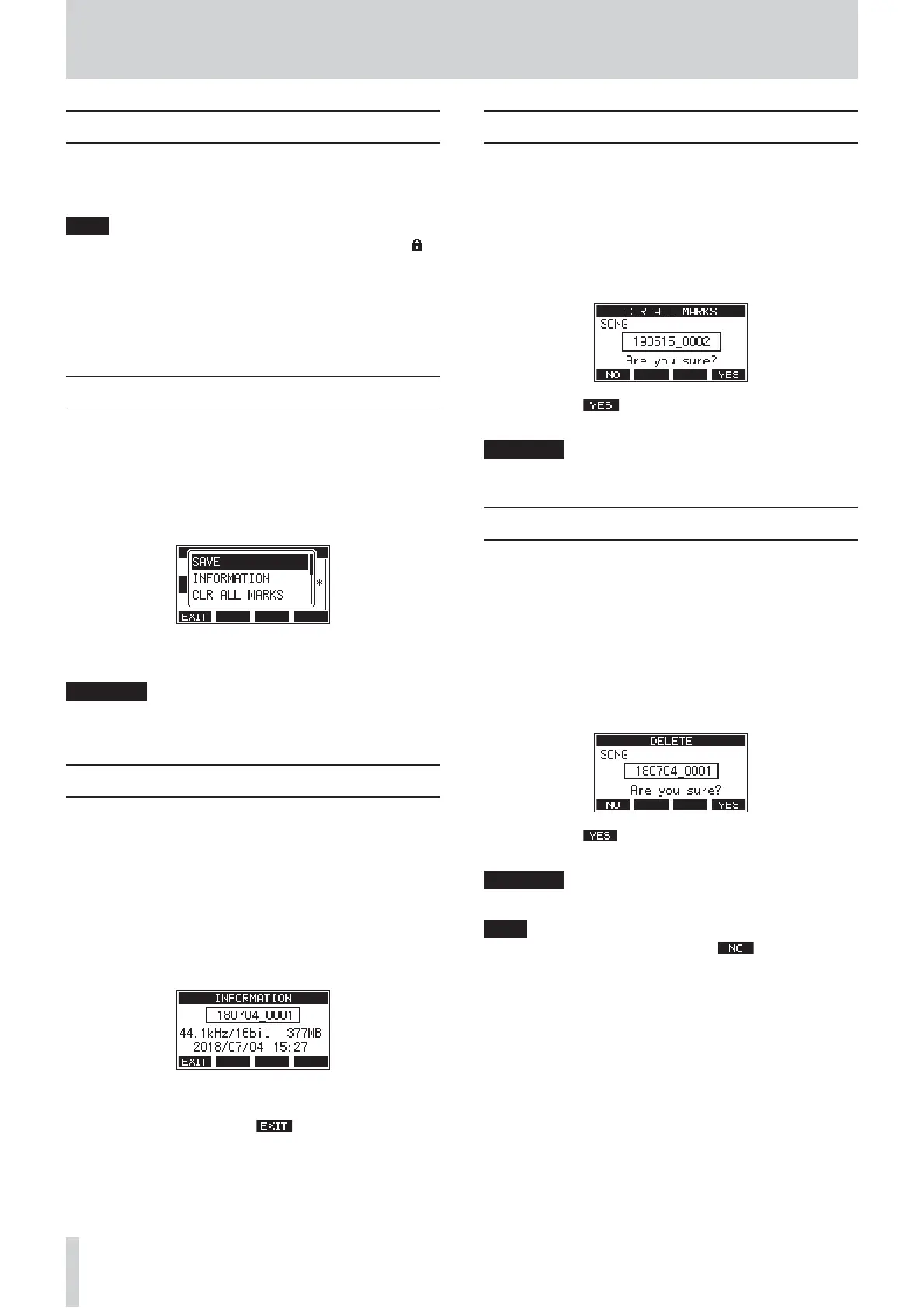 the current song as well as deleted marks, can be saved.