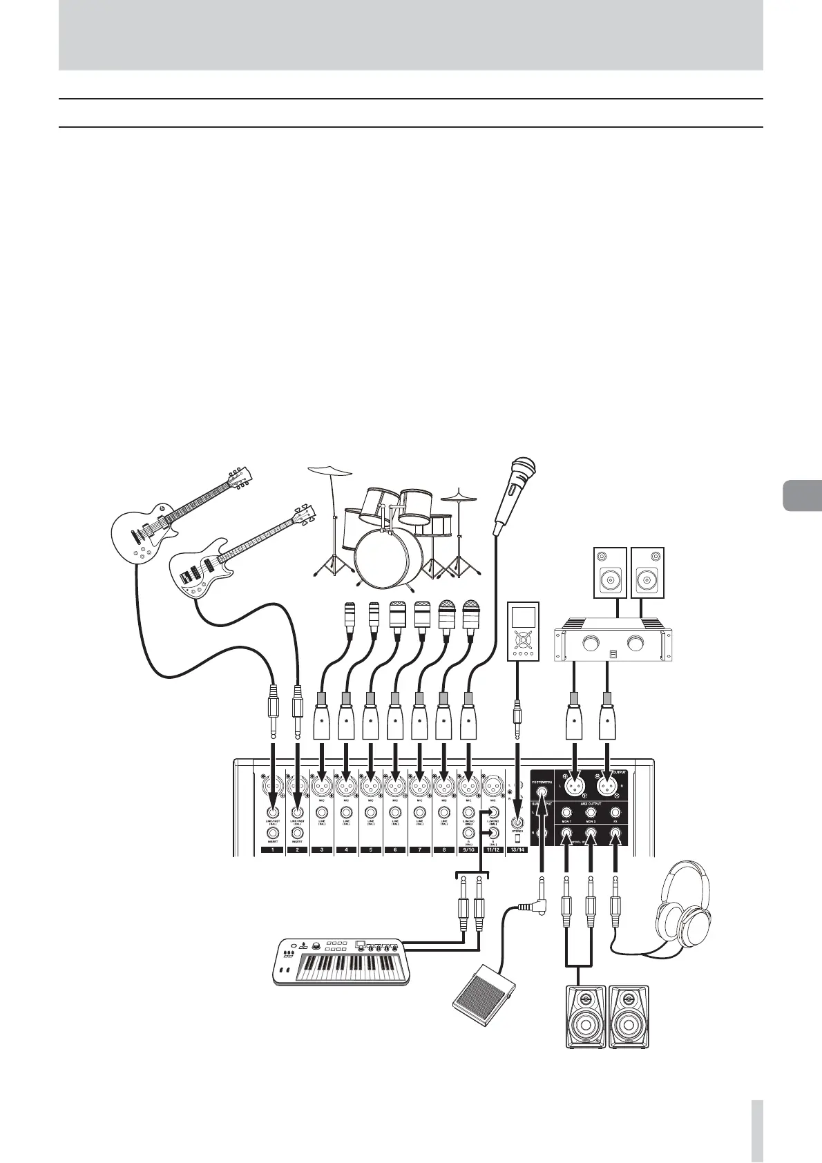 0 Avant de brancher du matériel audio, réglez les boutons et faders suivants au minimum. Ne pas le faire pourrait causer des bruits forts