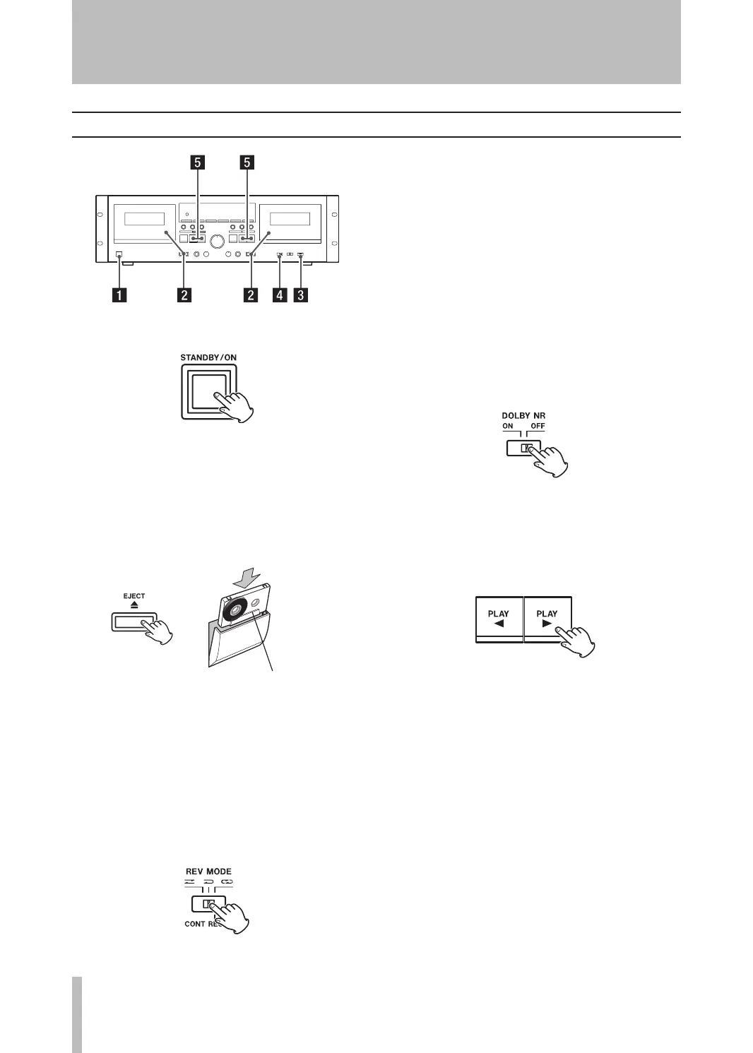2. Load a pre-recorded tape into the TAPE 1 or 2