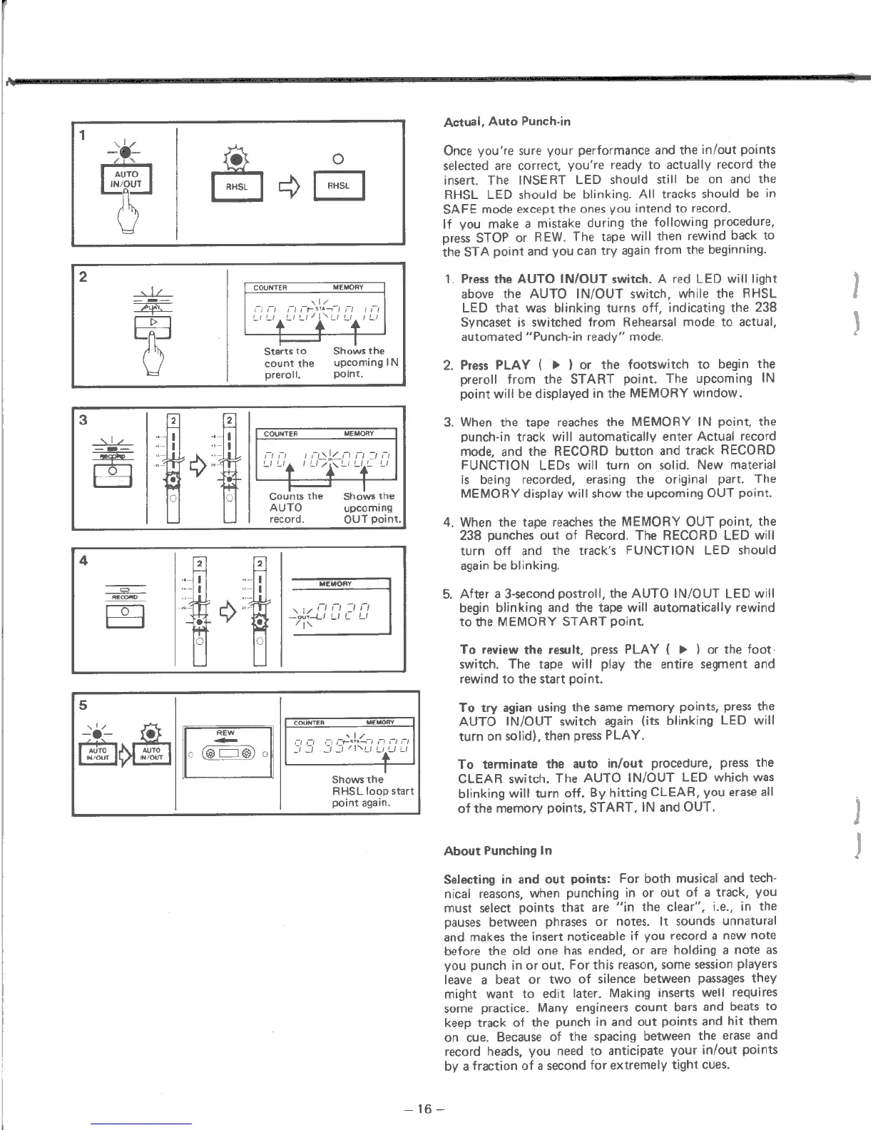 Tascam 238 - Actual Auto Punch-In; Punching In Best Practices