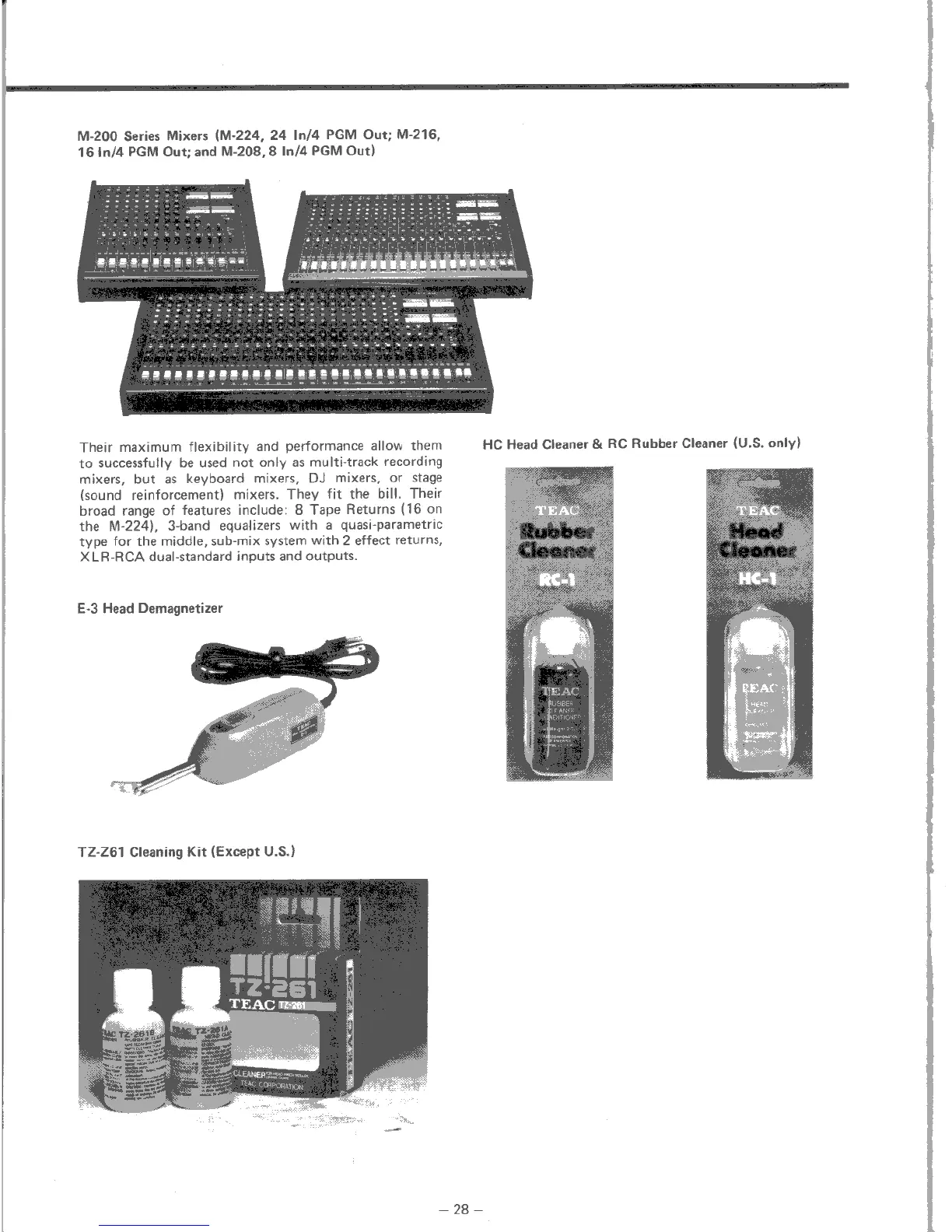 Tascam 238 - Recommended Mixers and Cleaning Kits