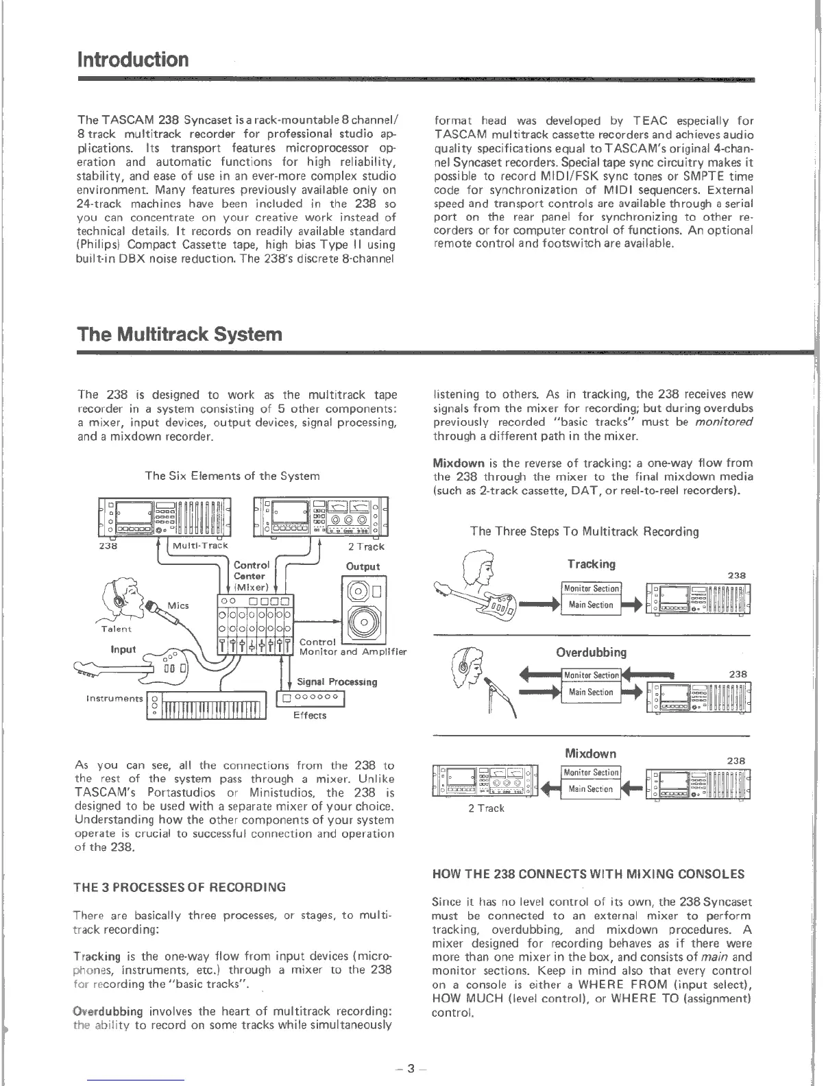 Tascam 238 - Introduction to TASCAM 238 Syncaset; The Multitrack System Overview; Key Recording Processes; Mixer Connectivity Explained