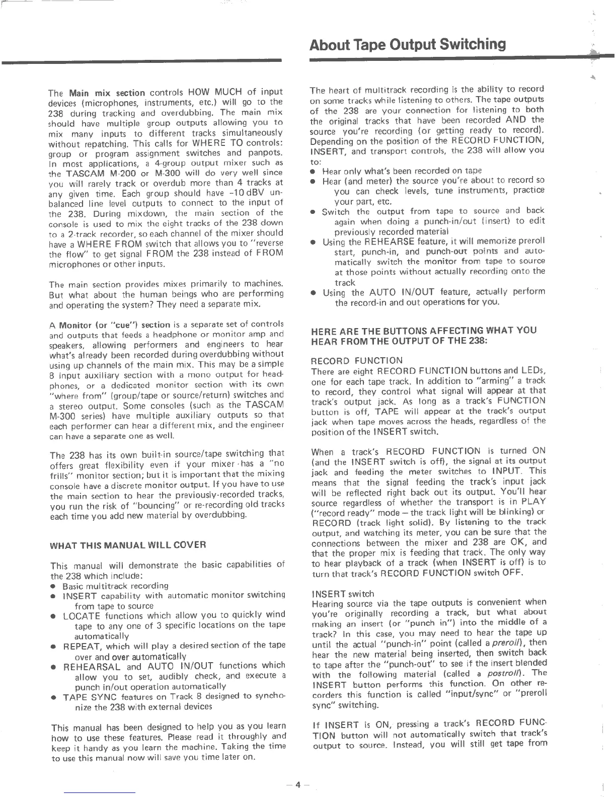 Tascam 238 - Understanding Tape Output Switching; Monitor Signal Flow