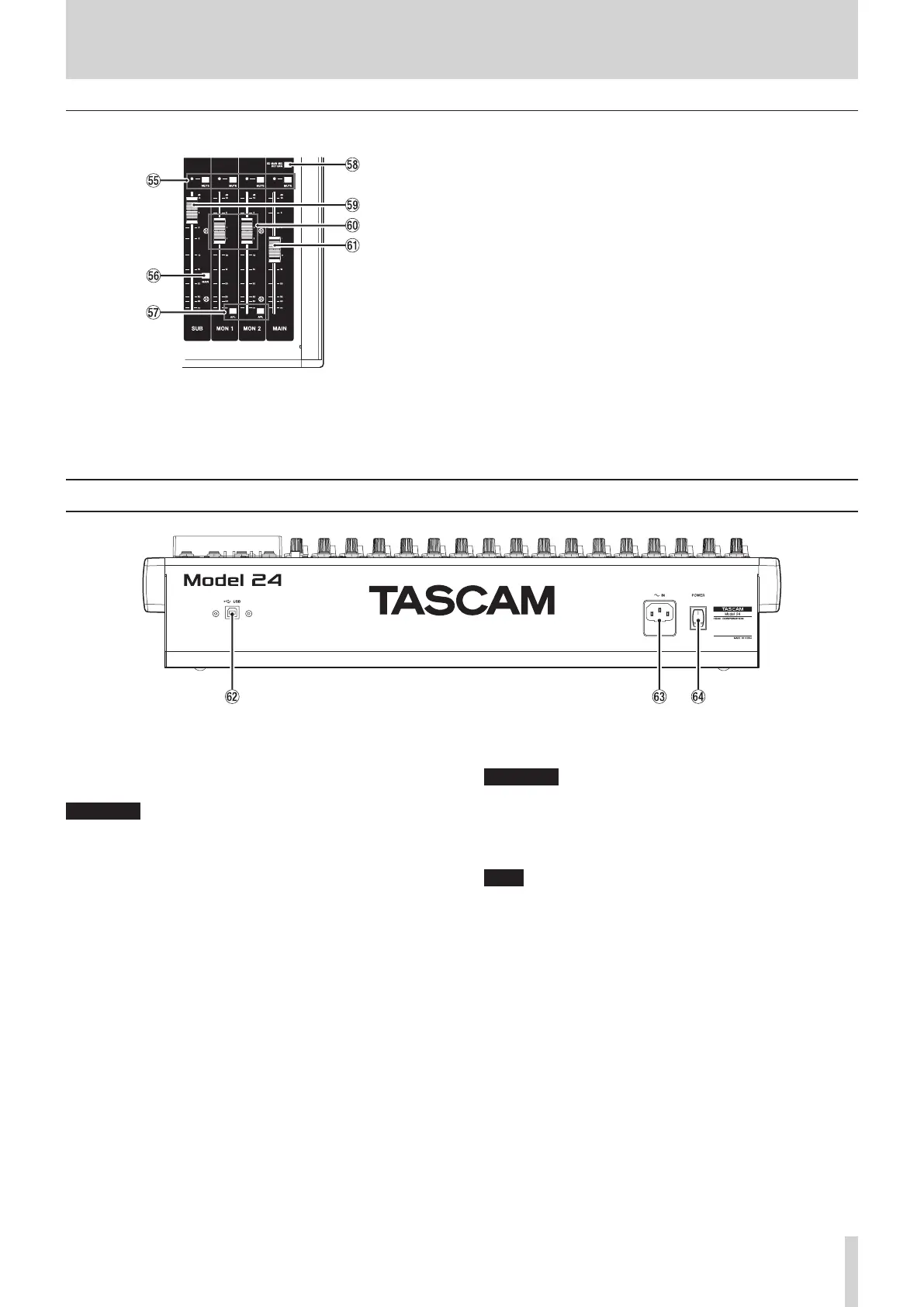 T MUTE switches and indicators (SUB, MON 1, MON 2,
