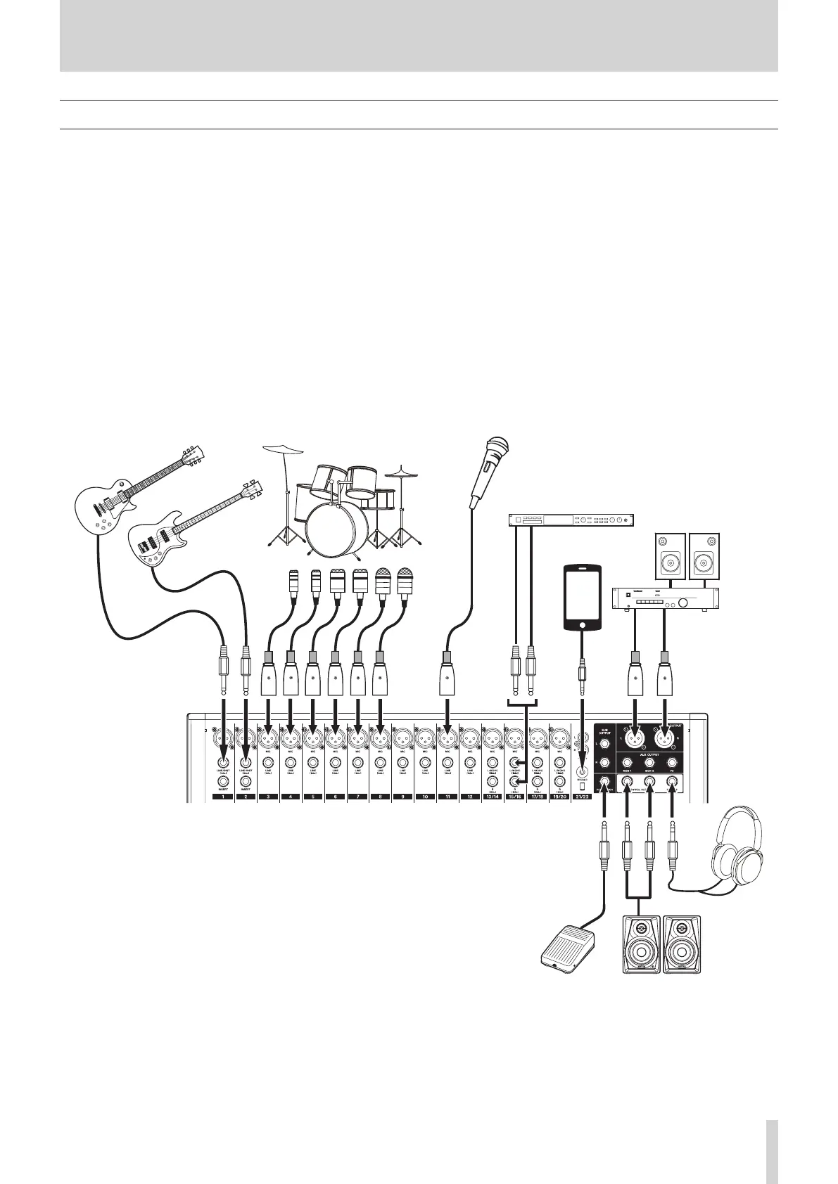 Before connecting audio equipment, set the following knobs and faders to their lowest values. Failure to do so could cause sudden loud noises from