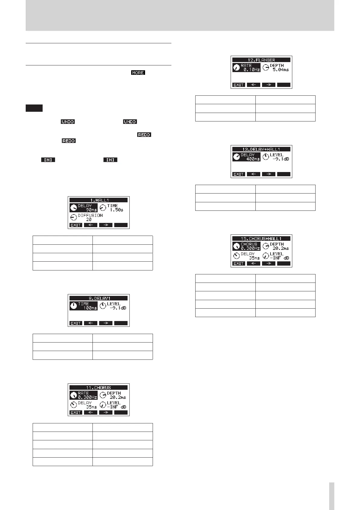 The parameters that can be adjusted for each eect on the