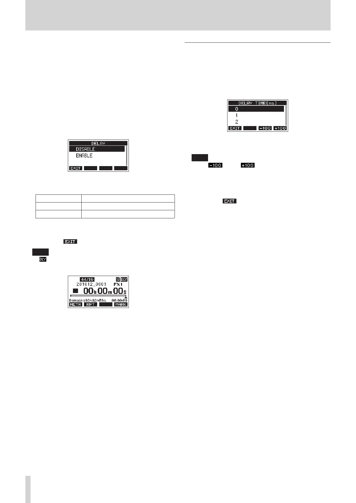 1. When the recorder is stopped, select OUTPUT DELAY on the