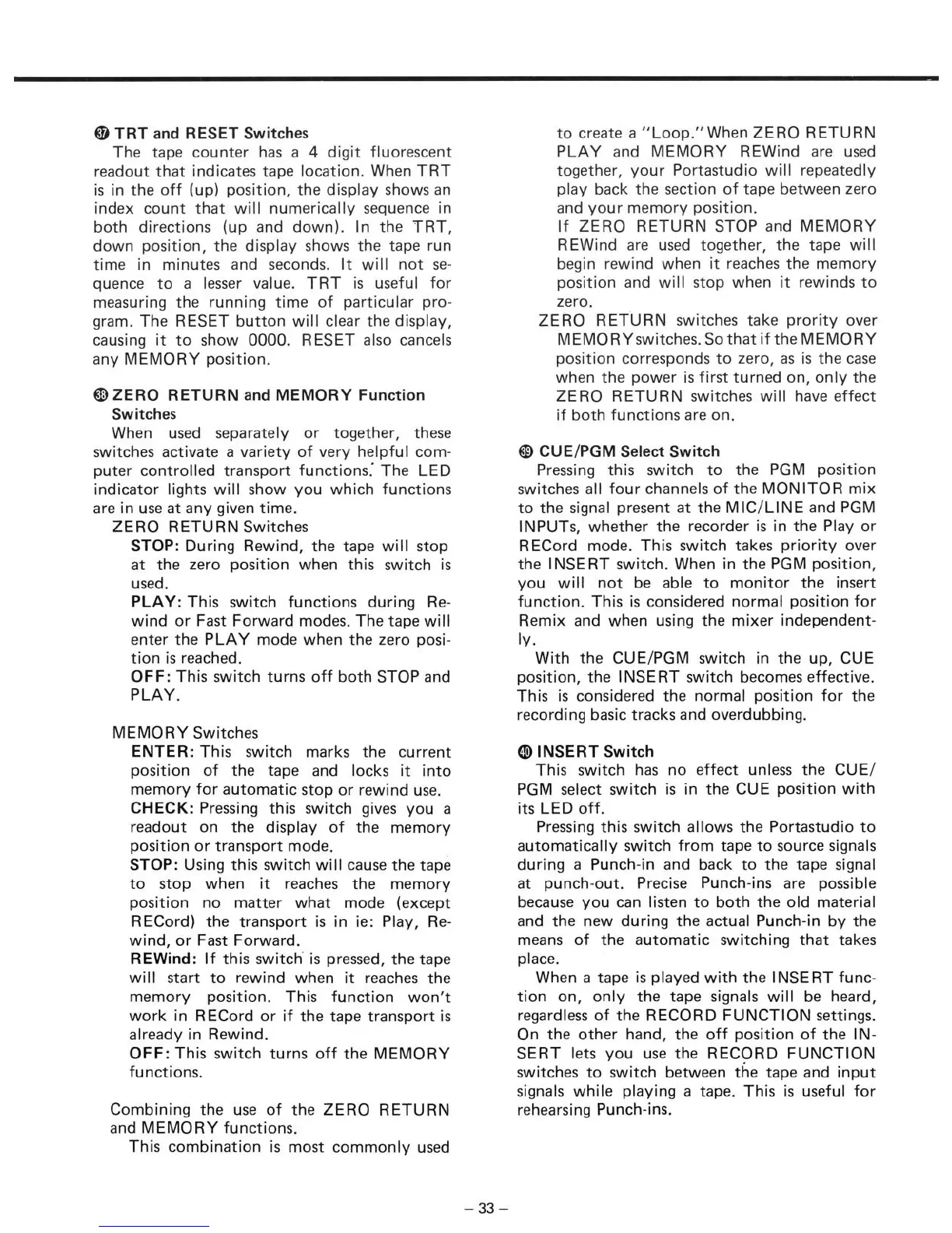 Tascam 246 - Zero Return and Memory Functions