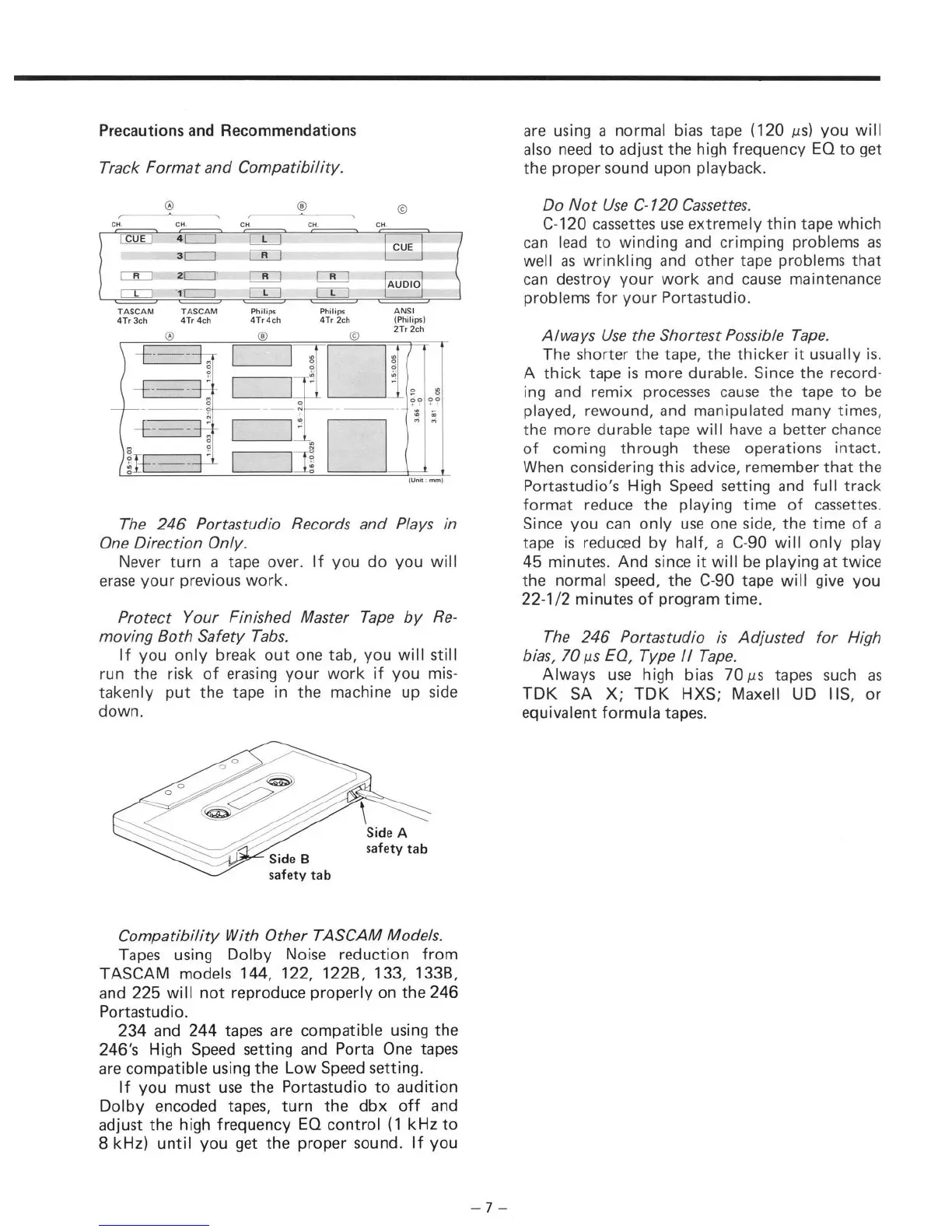 Tascam 246 - Maintenance and Safety Guidelines; Precautions and Recommendations