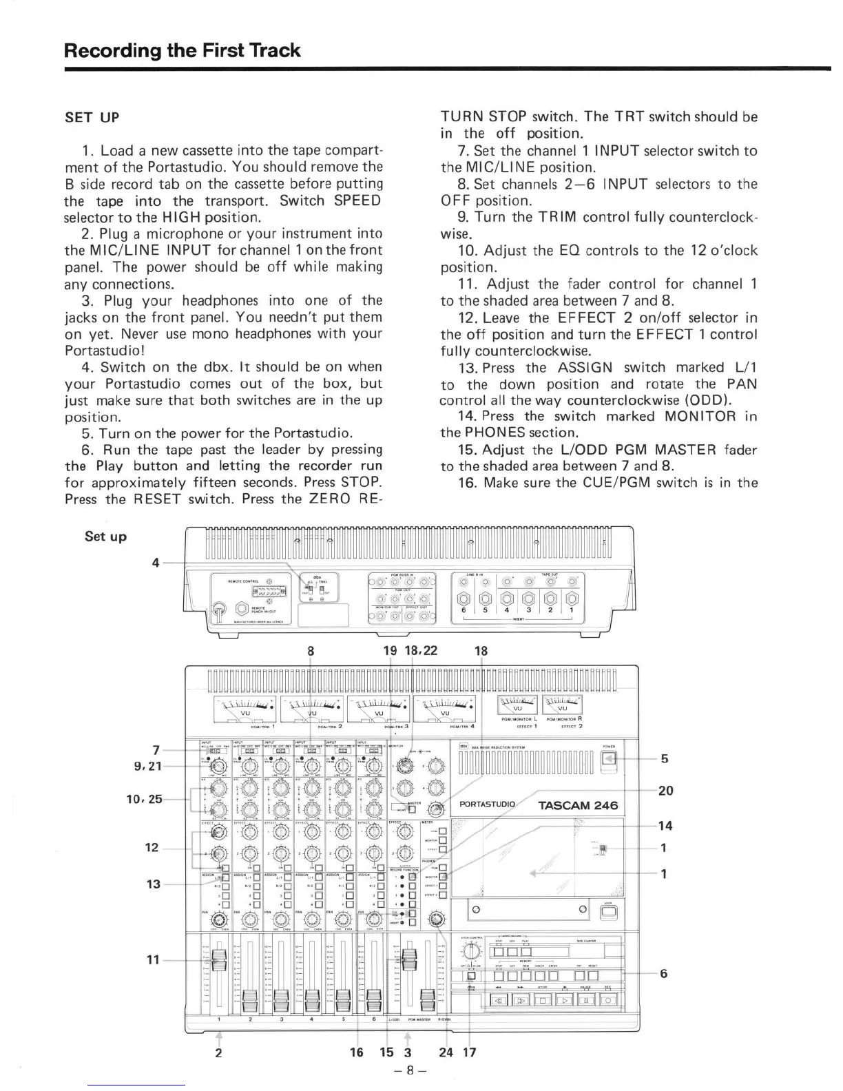 Tascam 246 - Recording and Editing Techniques; First Track Recording