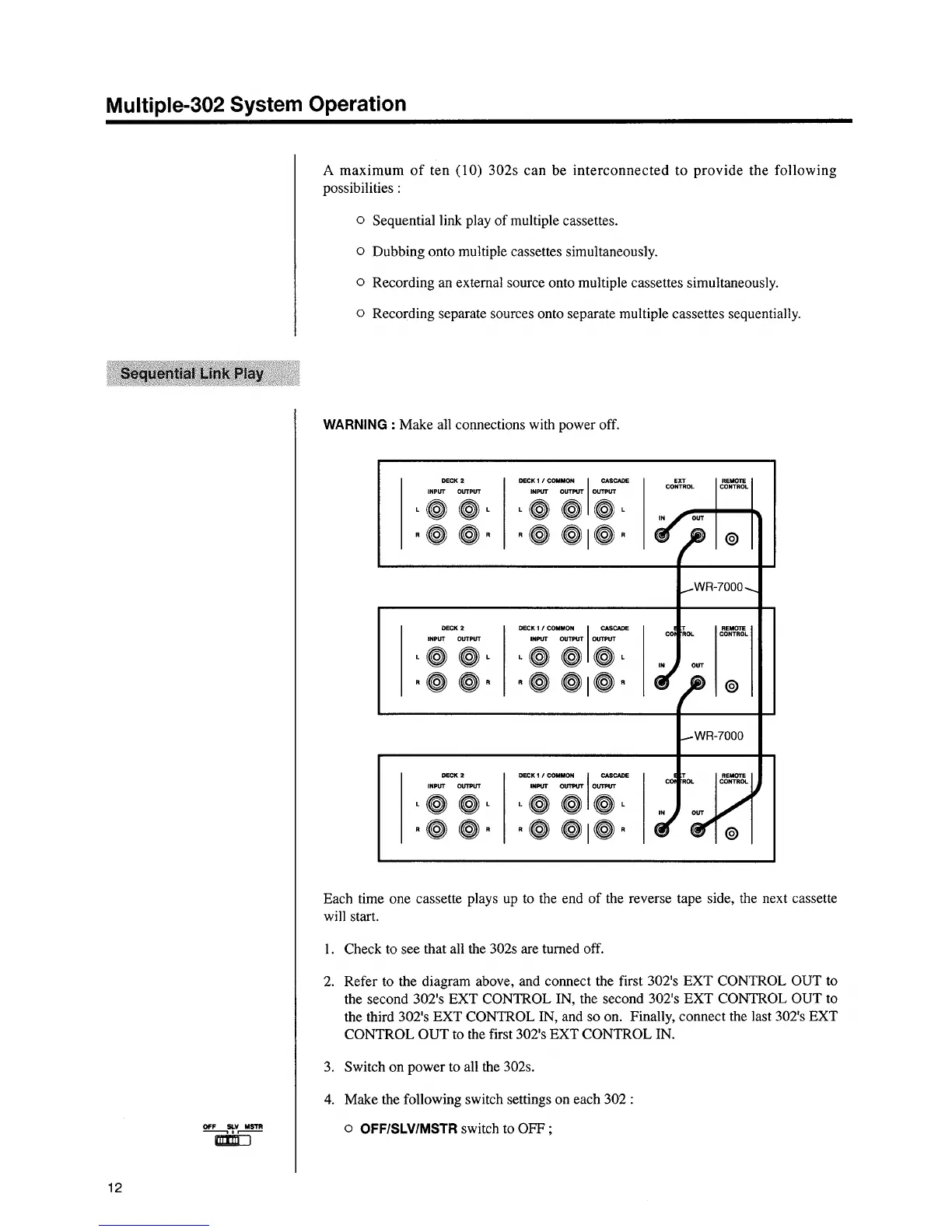 Tascam 302 - Multiple-302 System Operation; Sequential Link Play Setup