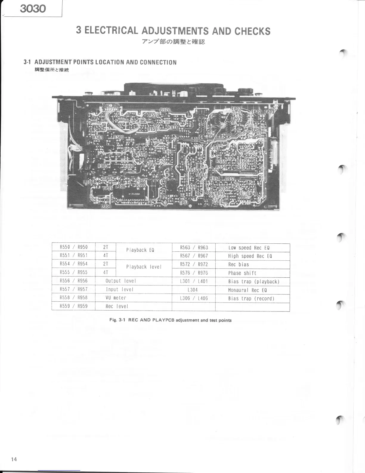 Tascam 3030 - 3 Electrical Adjustments and Checks; 3-1 Adjustment Points Location and Connection
