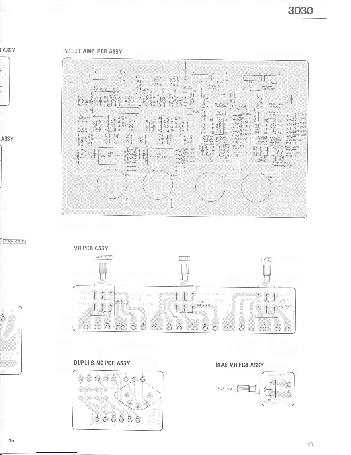 Tascam 3030 - In;Output Amp. PCB Assy; VR PCB Assy; Bias VR PCB Assy