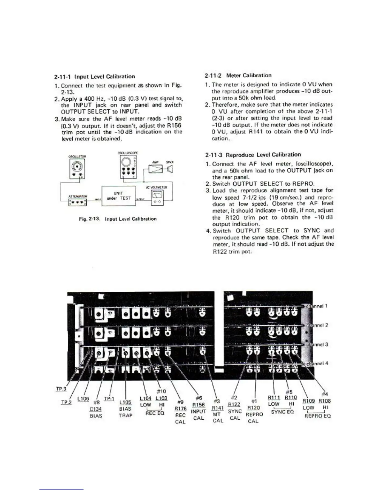 Tascam 34 - Input Level Calibration; Meter Calibration; Reproduce Level Calibration