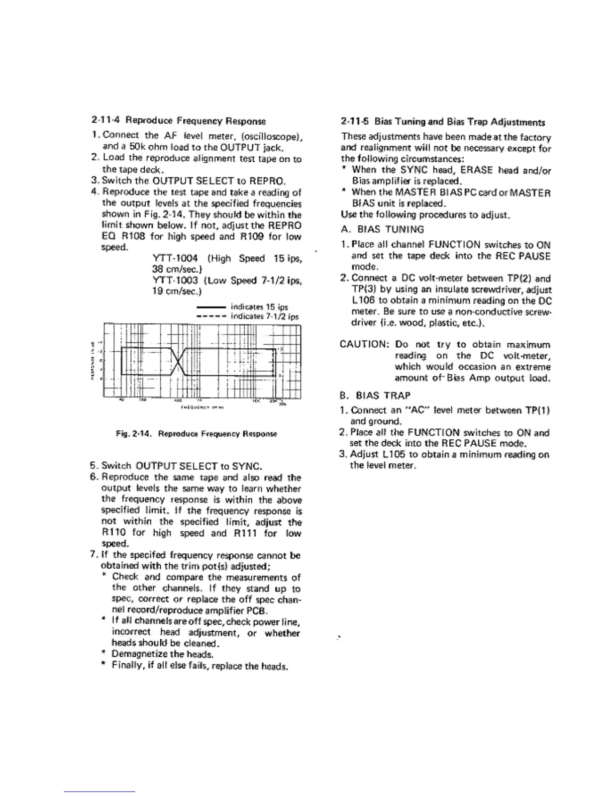 Tascam 34 - Reproduce Frequency Response; Bias Tuning and Bias Trap Adjustments