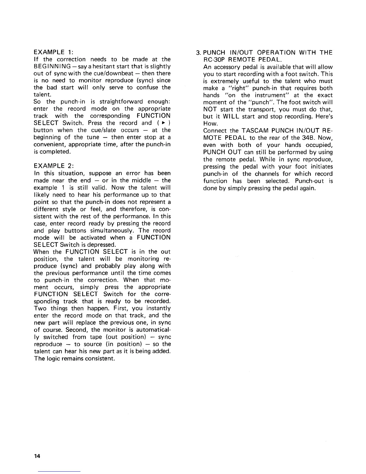 Tascam 34B - Remote Punch-In;Out Operation