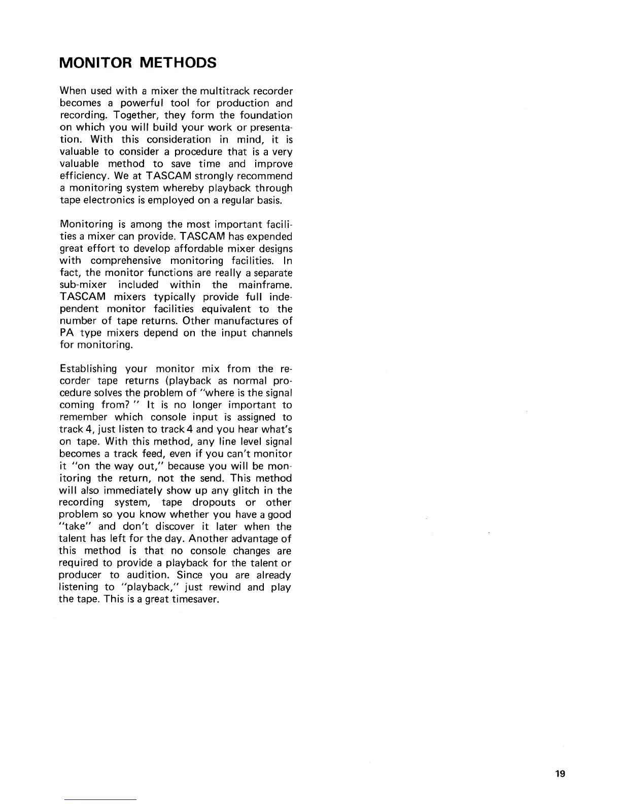 Tascam 34B - Monitor Methods; Optimizing Monitor Mix for Production Efficiency
