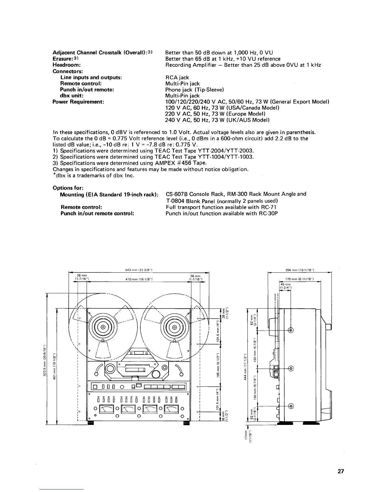 Tascam 34B - Connector Types and Power Requirements
