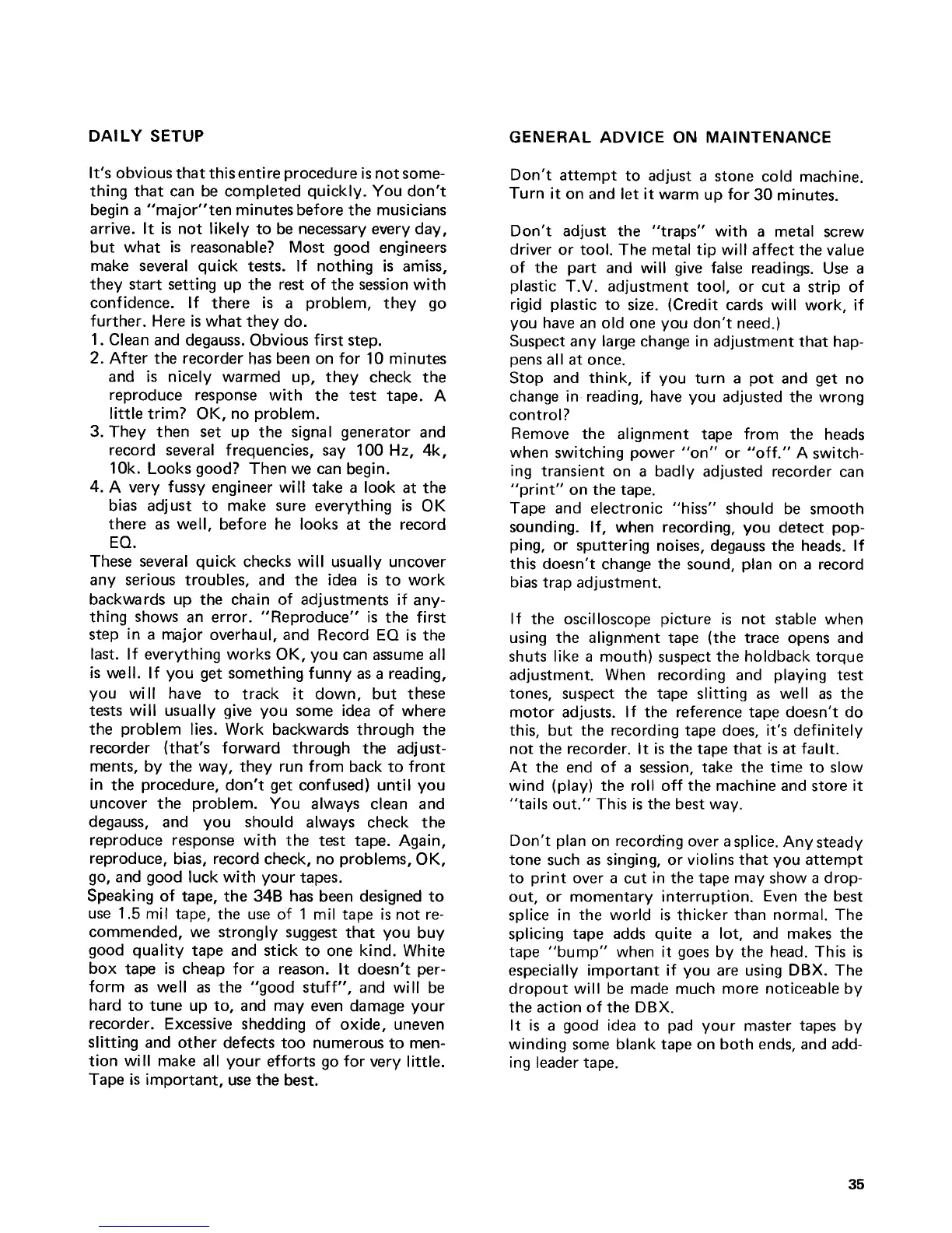 Tascam 34B - Daily Setup and Quick Checks; Essential Pre-Session Setup and Testing; General Maintenance Advice; Avoiding Common Pitfalls in Operation